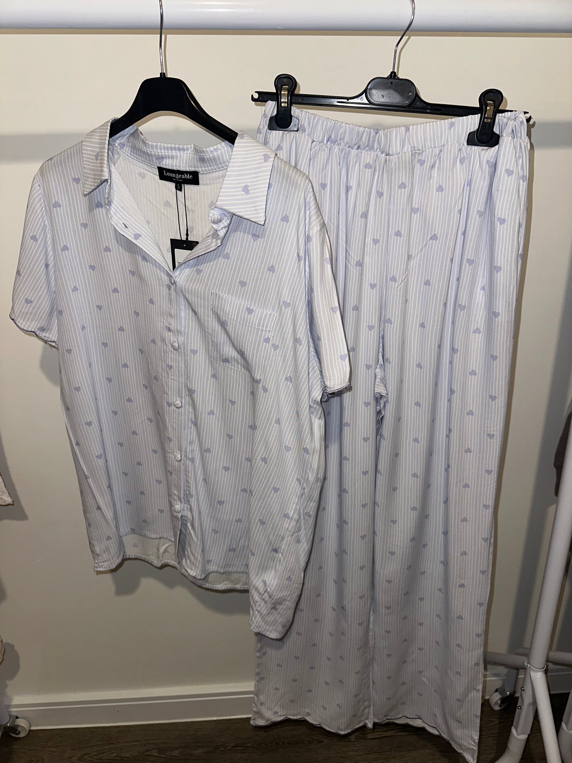 Blue Heart Stripe Short Sleeve Shirt and Trouser Set